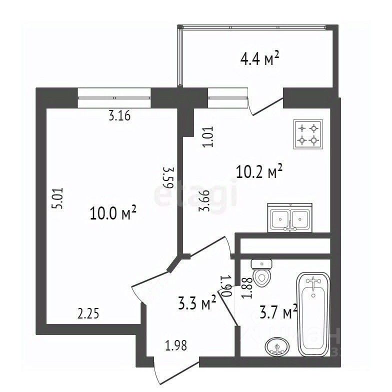 Площадь кухни10,2 м²