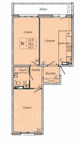 Общая площадь62,4 м²