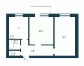 Комнаты изолированы, окна выходят на улицу и во двор. Жилая площадь составляет 28,4 кв. м,