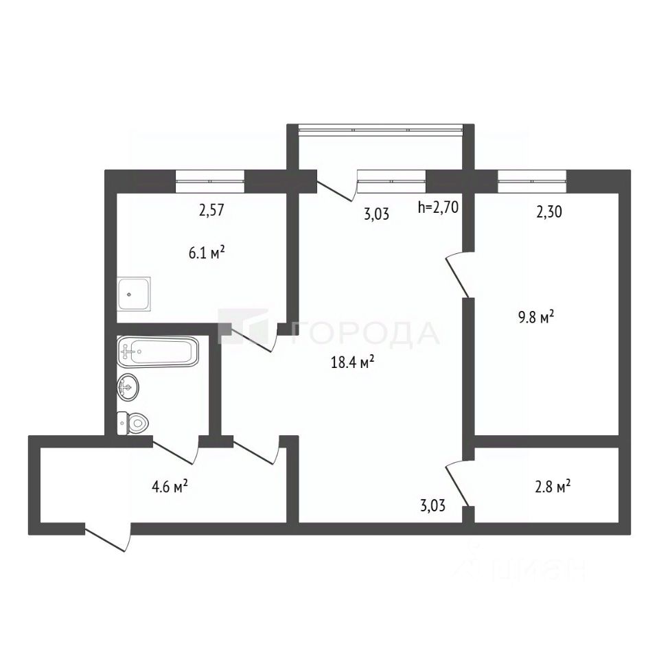 Совмещённый санузел и удобная планировка делают эту квартиру практичной и функциональной.