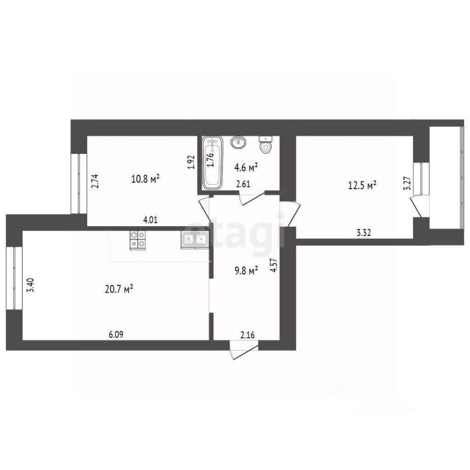 Квартира функционально спланирована: просторный коридор, большая кухня-студия, детская спальня, взрослая спальня изолированы, санузел просторный выполнен современным стильным кафелем!
