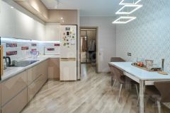 В квартире выполнен качественный ремонт, делали для себя - не на перепродажу, остается встроенный кухонный гарнитур, подобранный в цвет тонов в квартире.