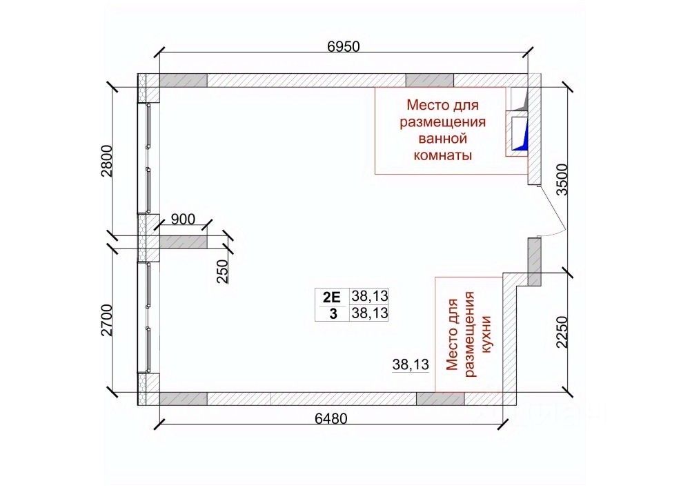 Общая площадь38,13 м²