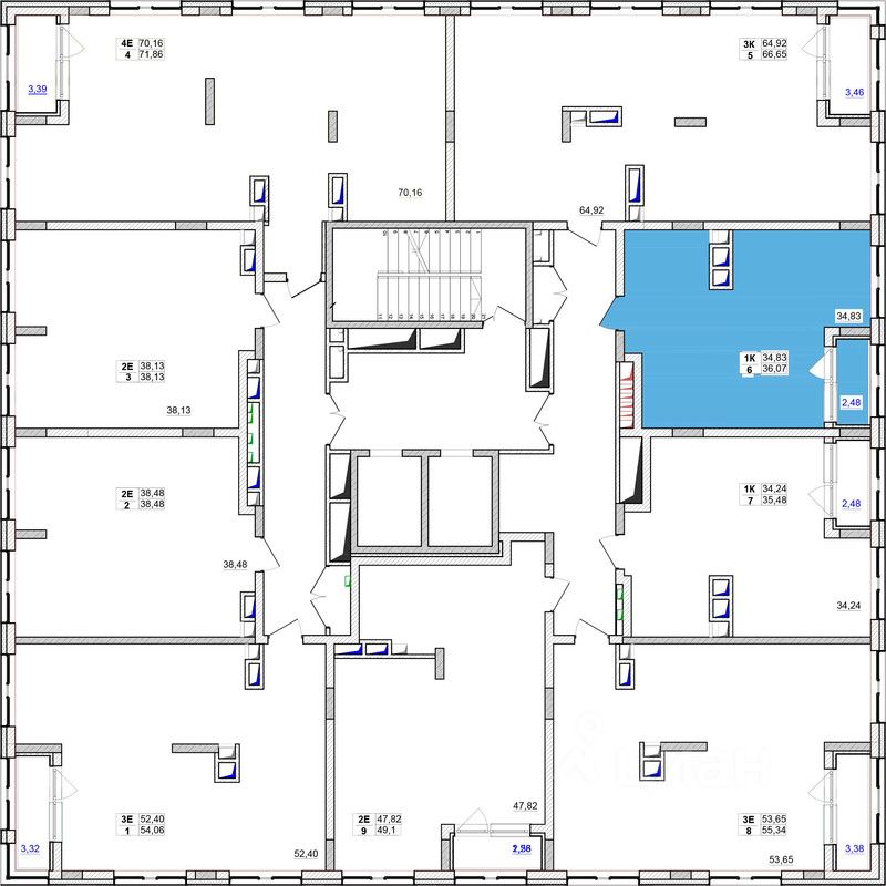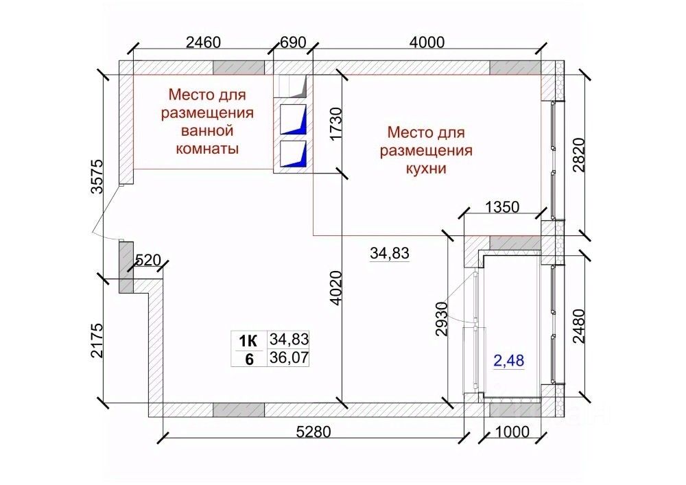 Общая площадь36,07 м²