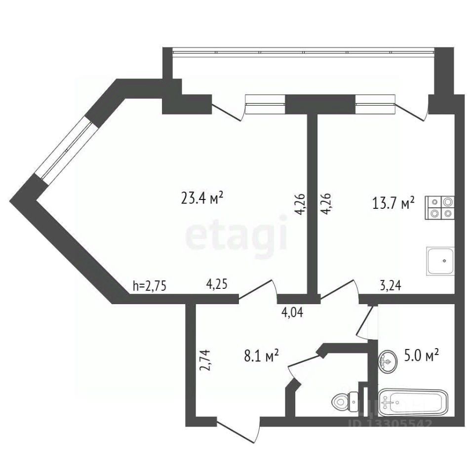 Исключительная планировка: Большая кухня 13 м², изолированная комната, а также впечатляющий балкон, который тянется вдоль кухни и комнаты, создавая дополнительное полезное пространство. Раздельный санузел,косметический ремонт.