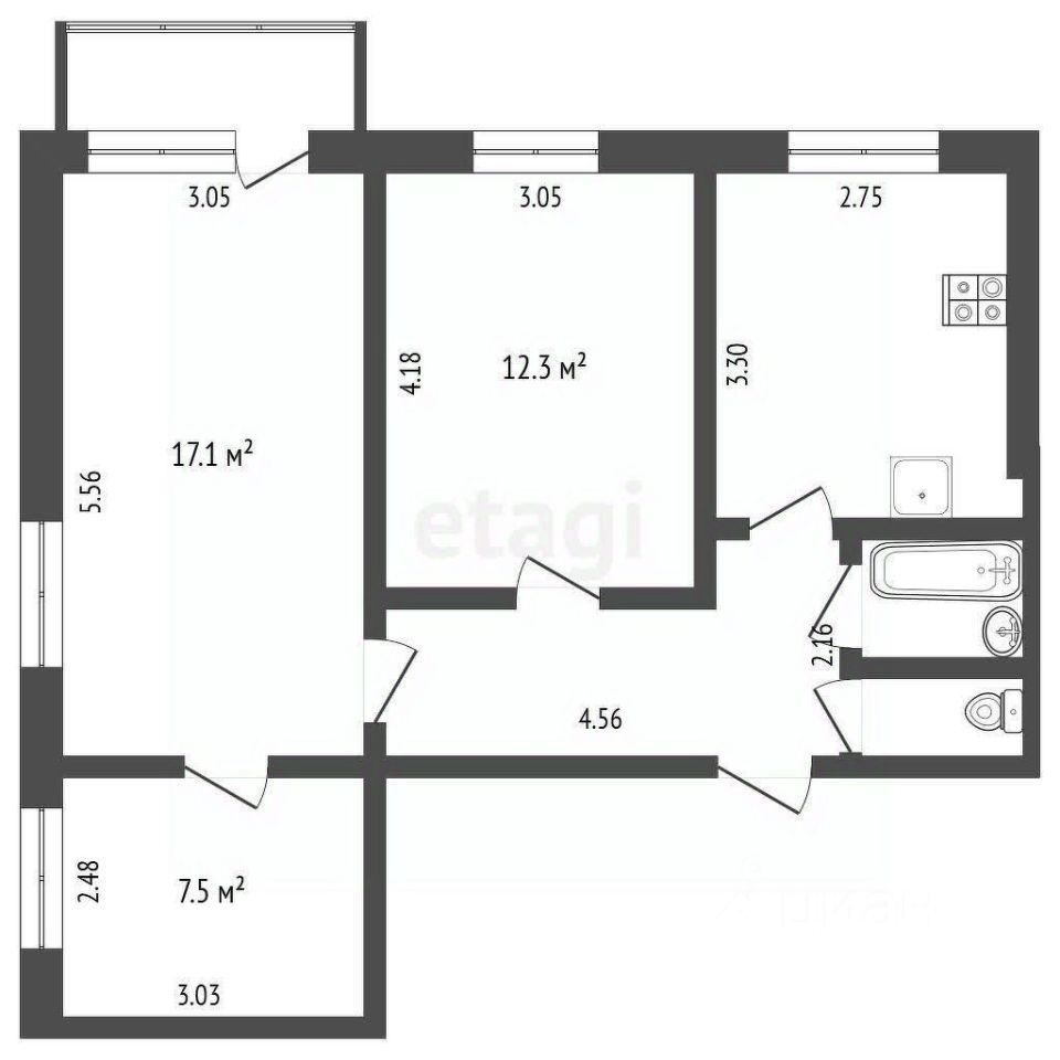 56,8 м²