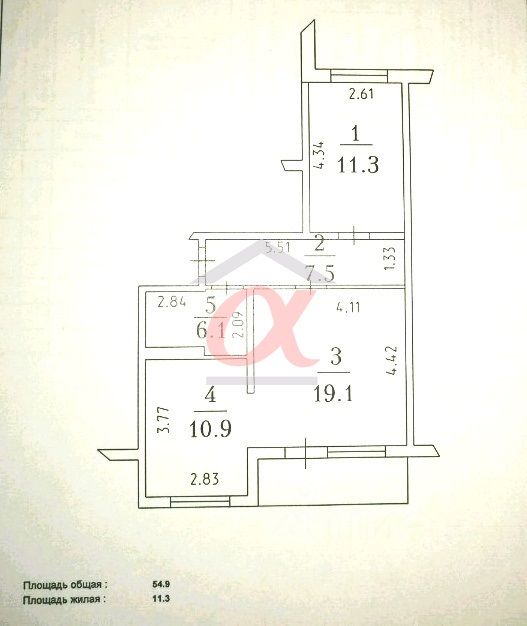 54 м²