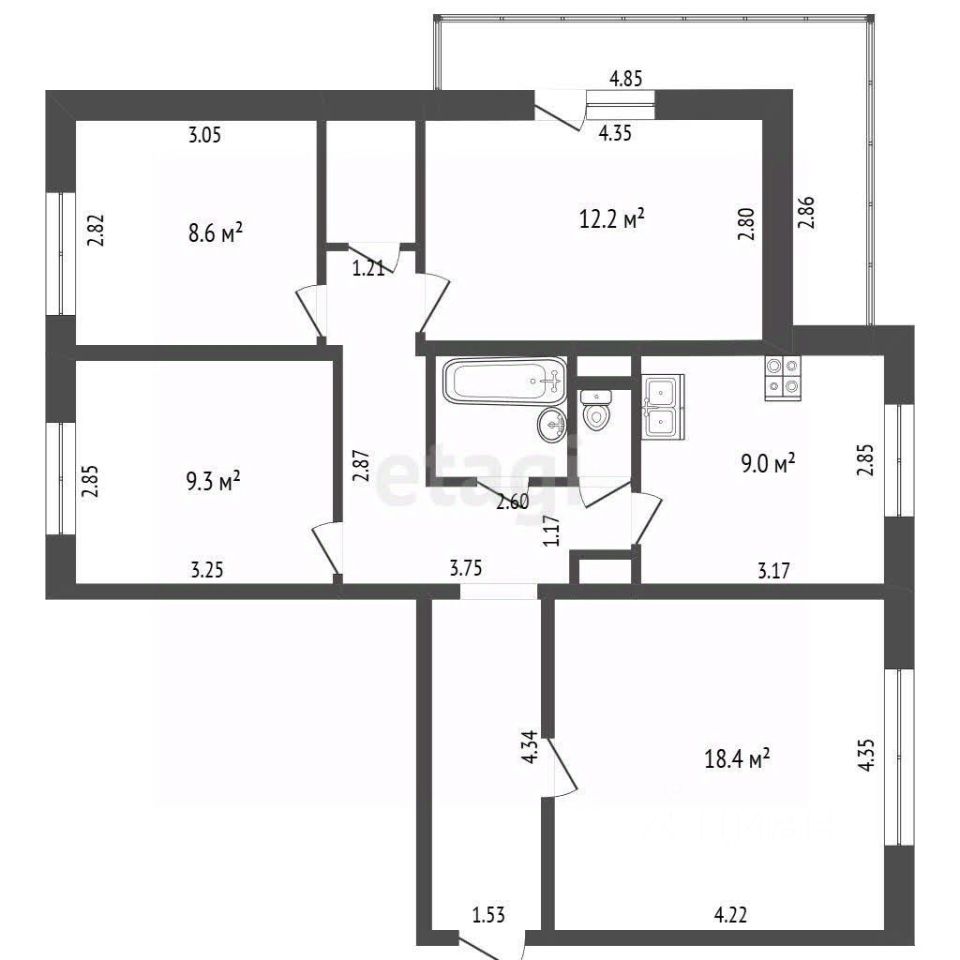 Квартира имеет удачное зонирование: все комнаты раздельные, просторная прихожая и кухня площадью 9 кв.м.