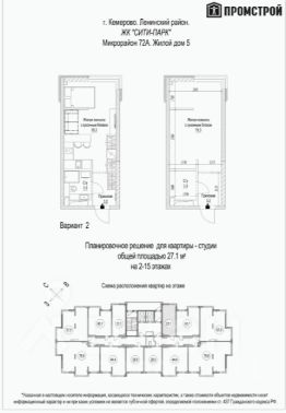 Продаётся квартира-студия в ЖК "Cити-Паpк" (Кемерово)