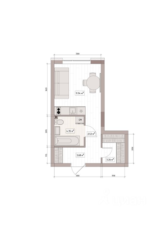 Общая площадь26,6 м²