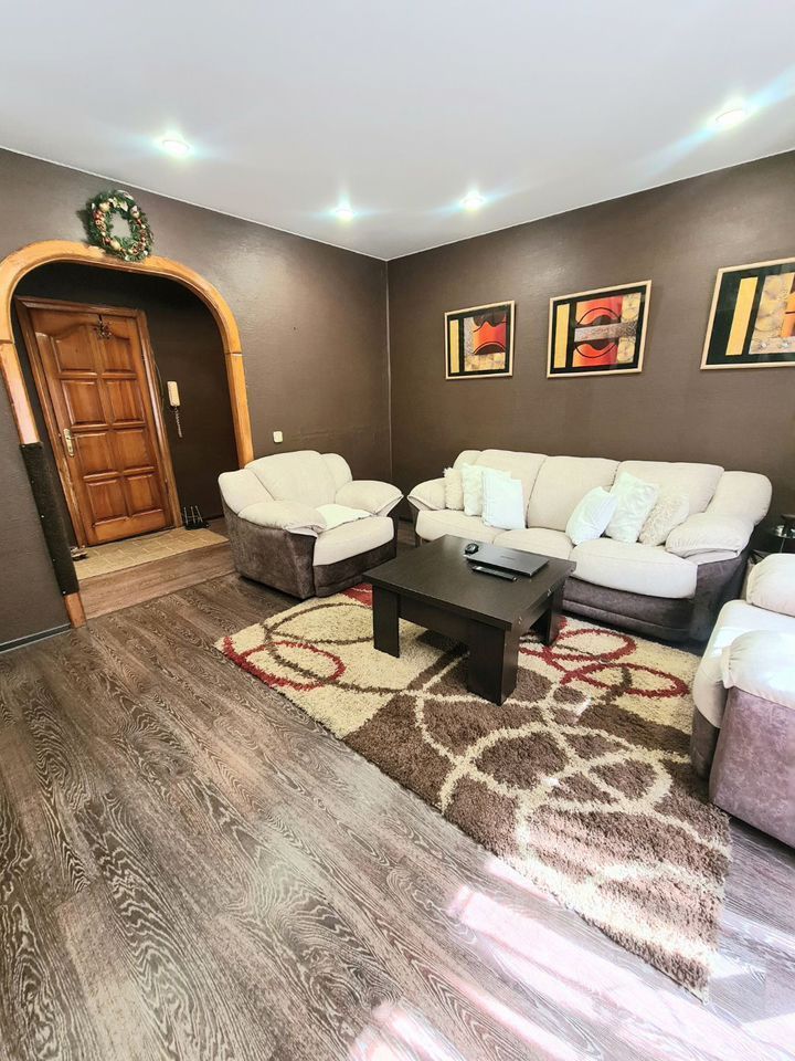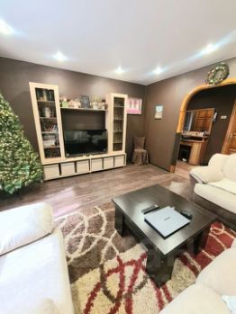 Выполнен косметический ремонт. Натяжные потолки, на полу линолеум, установлены окна ПВХ, межкомнатные двери из натурального дерева, в ванной комнате и санузле кафель.
