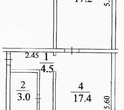 Планировка-большой трамвай: -гостиная 17,4 кв.м. с балконом; -спальня 17,2 кв.м.;