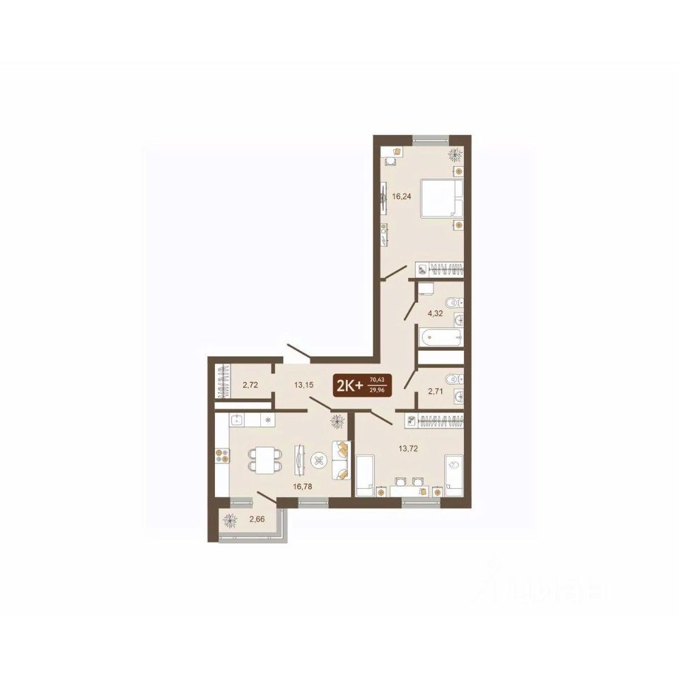 Общая площадь70,43 м²