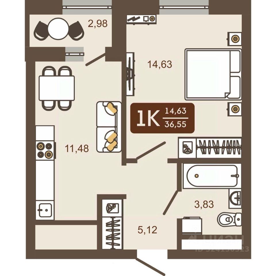 Общая площадь36,55 м²
