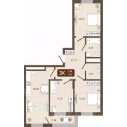Общая площадь77,48 м²