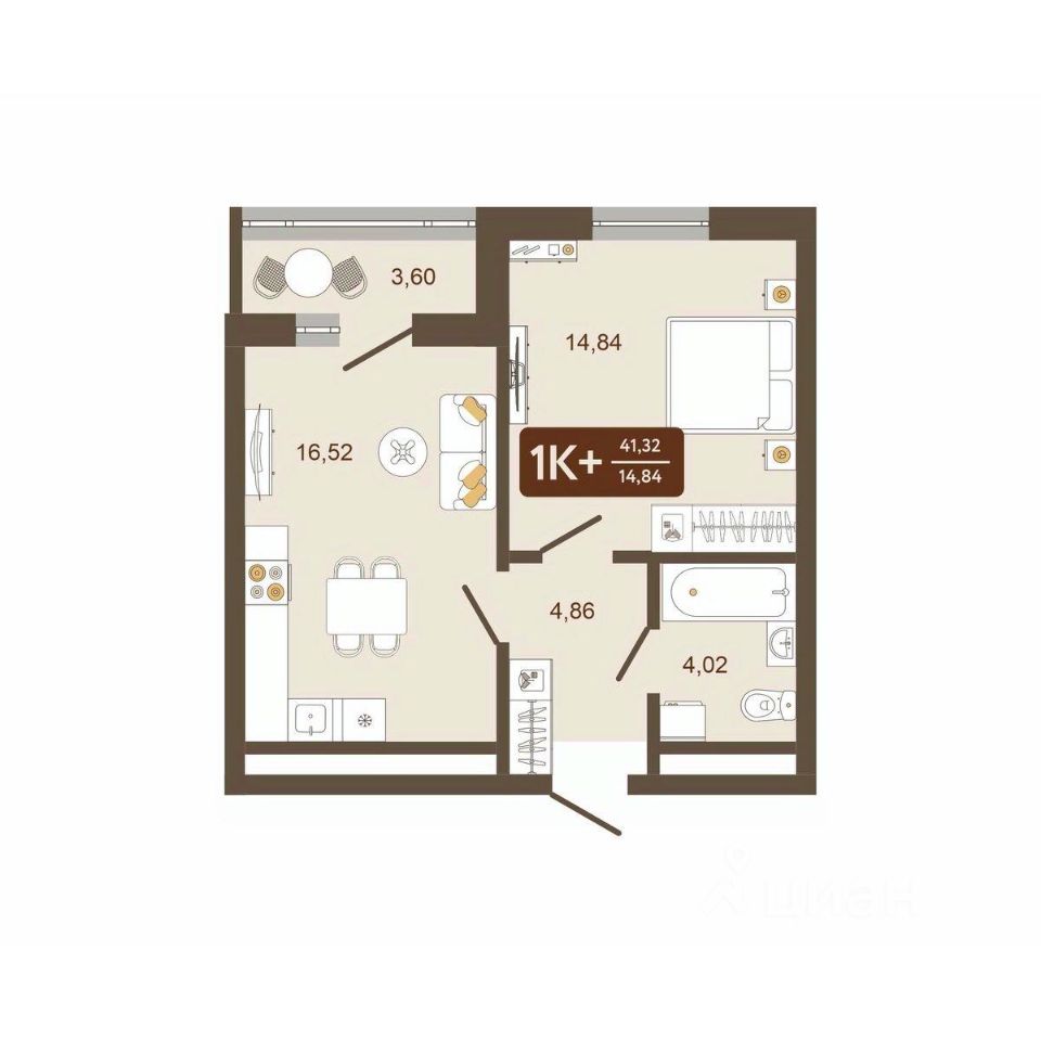 Общая площадь41,32 м²
