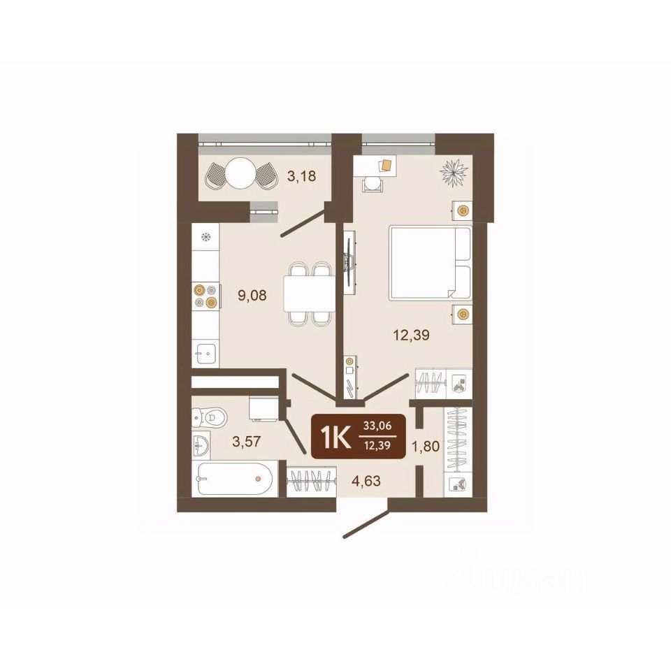 Общая площадь33,06 м²