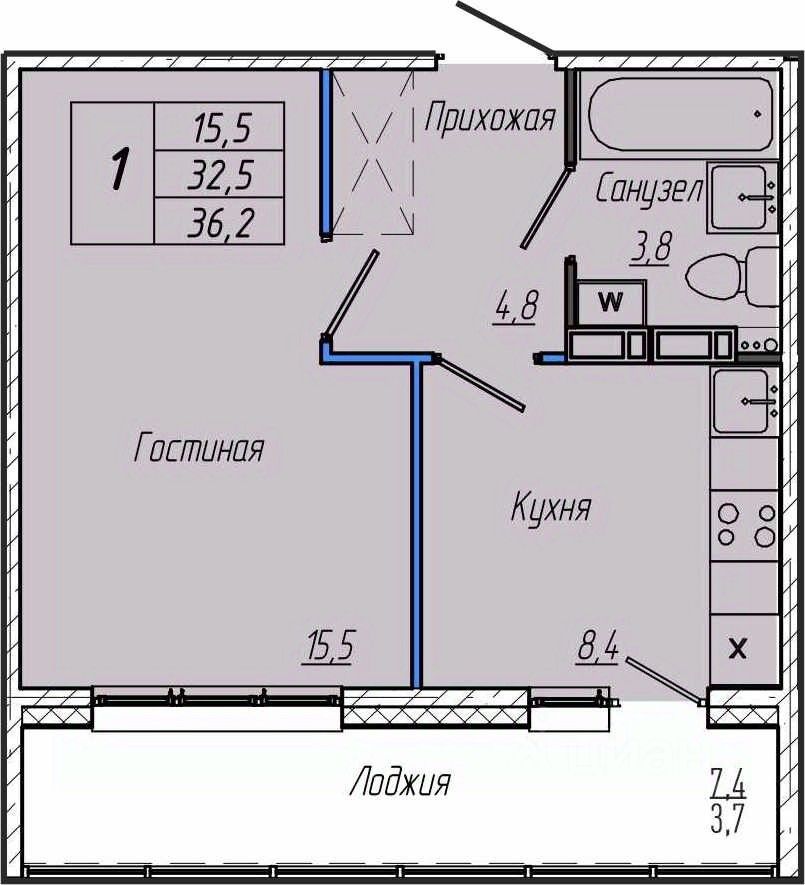 1 лоджия