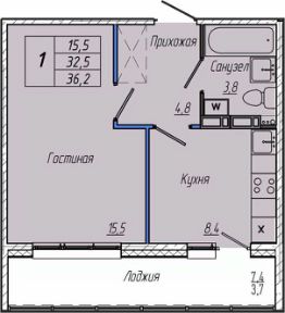 Общая площадь36,2 м²
