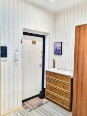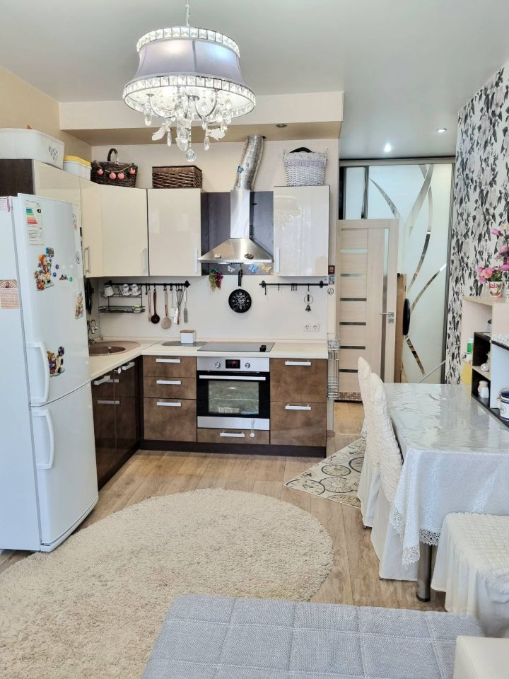 • В квартире остаются встроенный кухонный гарнитур с варочной панелью и духовым шкафом, встроенный шкаф в прихожей.