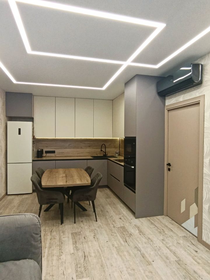 Квартира с продуманной комфортной планировкой, качественным свежим ремонтом с использованием дорогих строительных материалов: парящие натяжные потолки с системой освещения по индивидуальному заказу, дизайнерские межкомнатные двери с антивандальным покрытием и качественной фурнитурой, установлен кондиционер, просторный санузел с импортной сантехникой, бойлером, унитаз с инсталляцией, большая гардеробная с зеркальной дверью и удобной системой хранения.