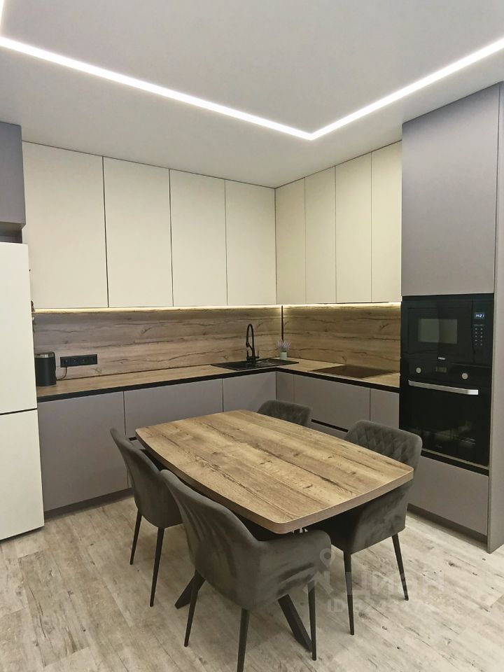 В квартире остается при продаже современная встроенная кухня с подсветкой и встроенной техникой, большой угловой диван покрытие велюр.