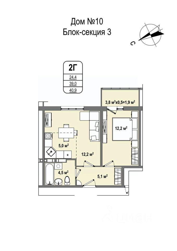 40,9 м²