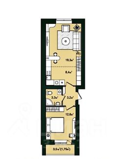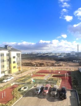 Общая площадь квартиры с лоджией 50,5 кв.м. Гостиная с кухонным блоком 28 кв.м.,спальная комната на детскую площадку 12,6 кв.м., верхний этаж! (больше света, отсутствие соседей сверху), высота потолка 3 м.