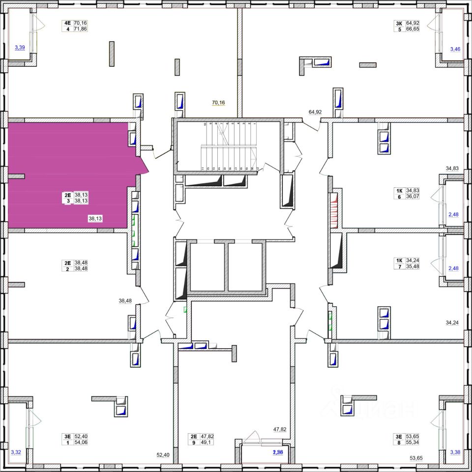 Общая площадь38,13 м²