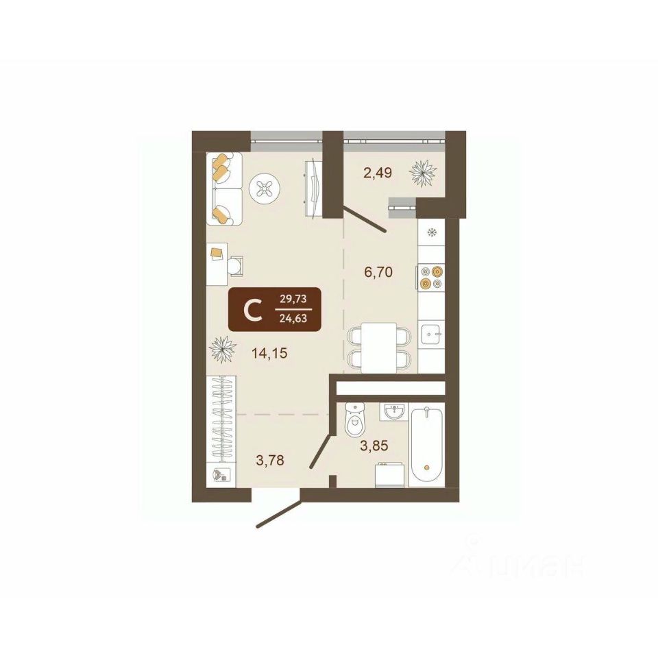 Общая площадь29,73 м²