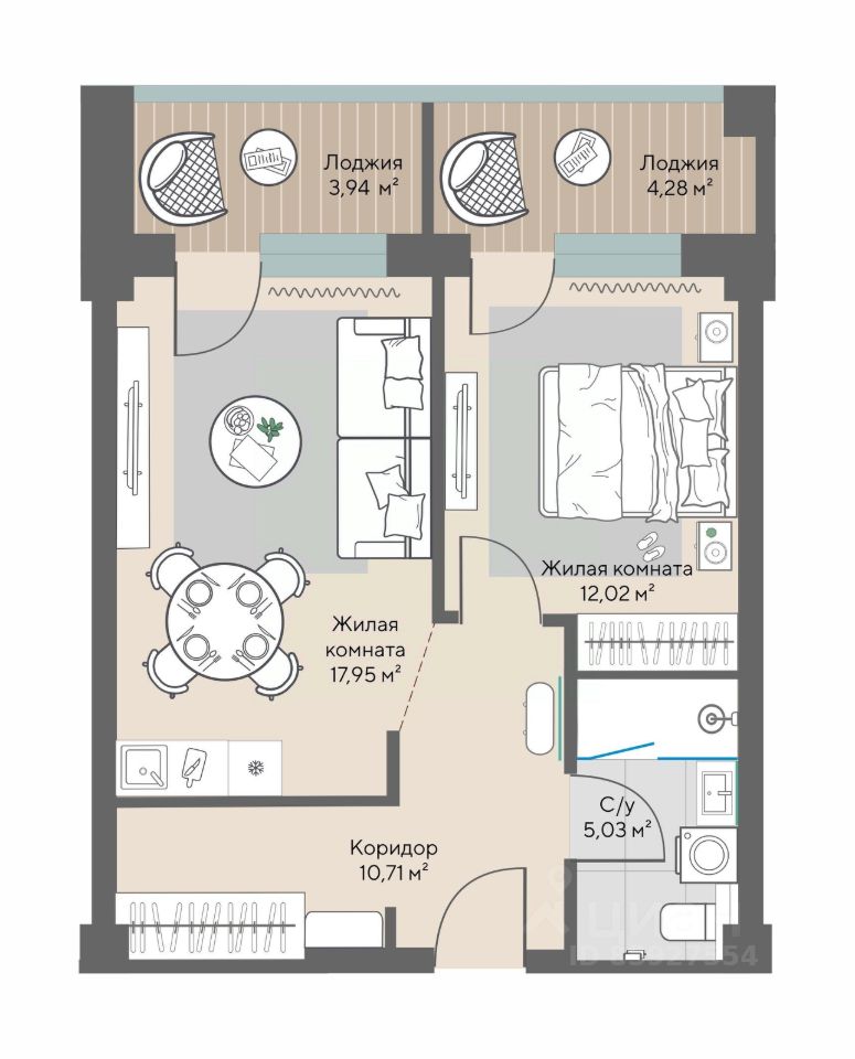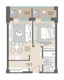 Продаются 1-комнатные апартаменты в строящемся доме (Блок 1 (Весенняя, 62)), срок сдачи: II-кв. 2027, общей площадью 49.81 кв.м., на 9 этаже.