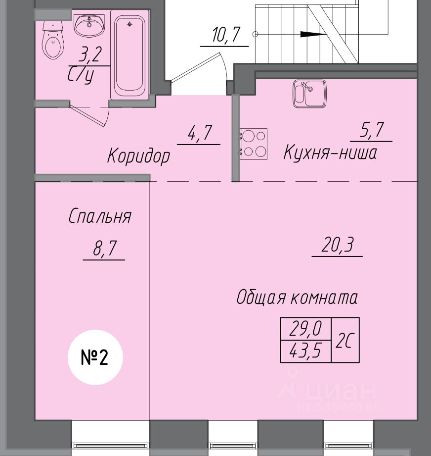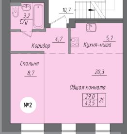 Продаётся 2-комнатная квартира в строящемся доме (Корпус 5), срок сдачи: IV-кв. 2025, общей площадью 43.5 кв.м., на 2 этаже. Уникальныи проект малоэтажного строительства в непосредственнои близости к развитои городскои инфраструктуре.
