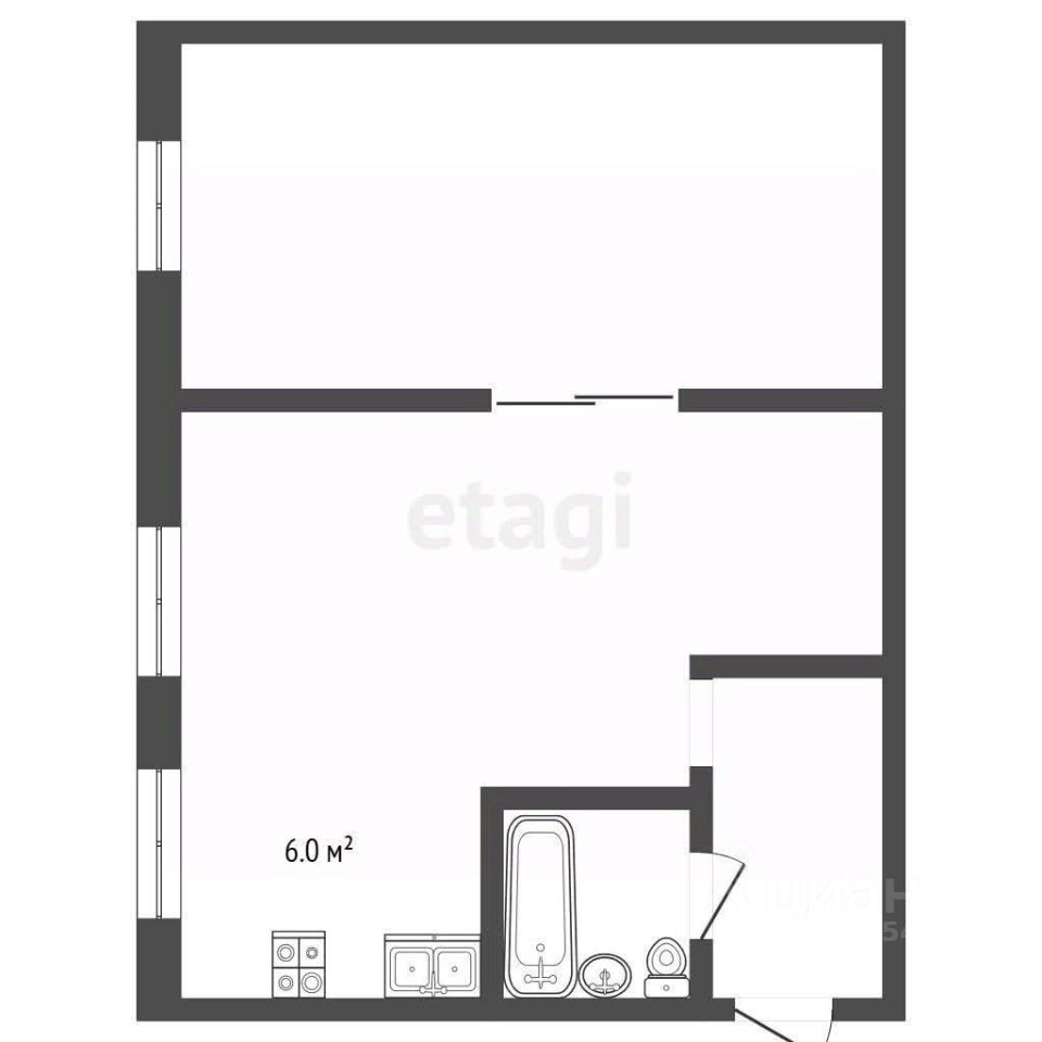 Общая площадь: 42,7 м².