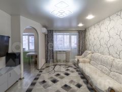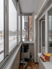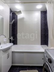 Санузел отделан светлой плиткой, он достаточно просторный для размещения стиральной машины. Часть мебели остается в квартире по договоренности с новым владельцем.