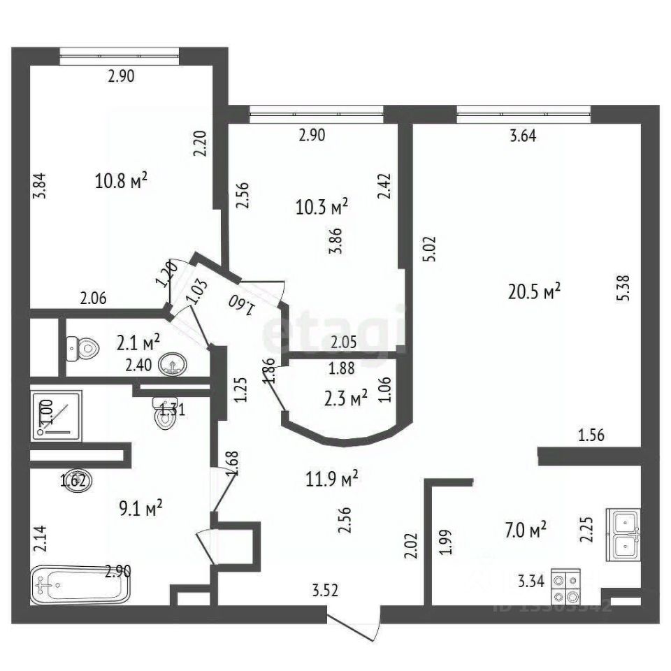 Продается просторная и комфортная 3к квартира в комфортном монолитно-кирпичном ЖК "Родные просторы" (застройщик Промстрой) площадью 74,4 кв. м.