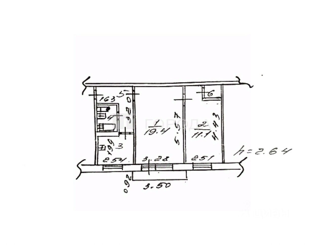 ОБЪЕКТ: 2-х комнатная в самом центре города, площадь 45,5 кв.м. Кухня площадь 6,3 кв.м. на 4-м этаже 5-ти этажного дома.