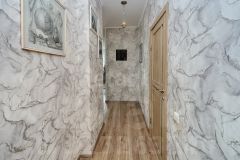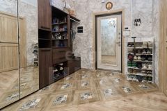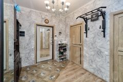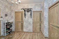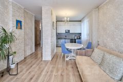 Планировка квартиры предусматривает: просторный коридор - 12,9 м2, просторная гардеробная для хранения одежды и мелкой домашней утвари - 5,4 м2, большая детская комната, в которой комфортно устроятся 2 ребенка - 18,5 м2, взрослая спальня - 11,7 м2, просторная и светлая (2 окна с разных сторон комнаты) кухня-гостиная - 29,6 м2, большой совмещенный санузел - 6,7 м2.