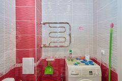В квартире современный ремонт, панорамные окна, на полу ламинат, в кухне керамогранит, санузел совмещенный: на стенах кафель на полу керамогранит.