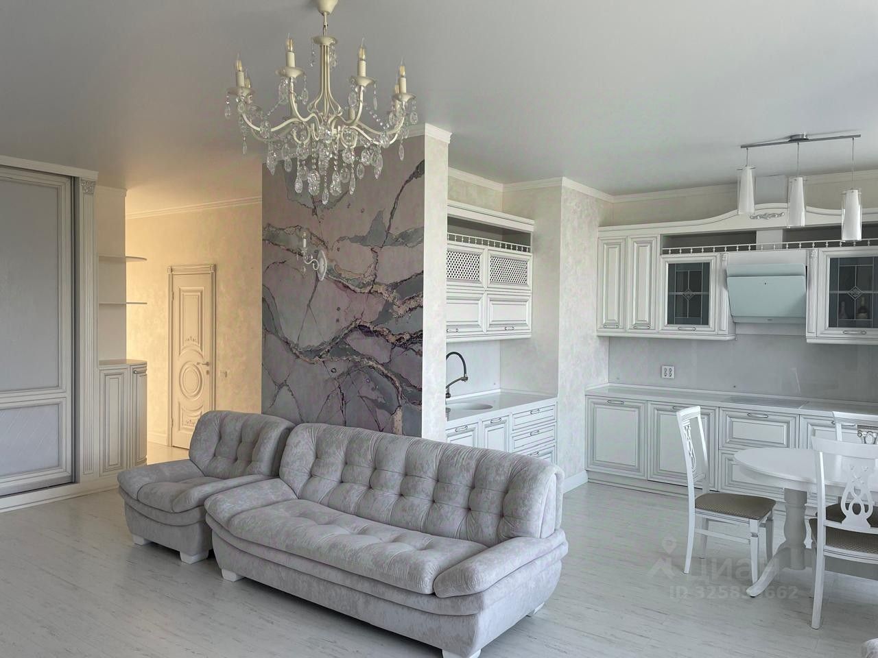 Эксклюзивная квартира в идеальном состоянии без соседей сверху, светлaя, тeплaя, уютнaя, c шикарным видом на обе стороны, и дизайнерским ремонтом в классическом стиле, произведенном в 2023 году. Напольное покрытие ламинат 33 класса сроком службы более 20 лет, высококачественные межкомнатные двери с магнитными замками РЕНЦ, авторская венецианская штукатурка в зонах декора, зонированное освещение, электрика SHIN DONG-A, корпусная мебель с премиум класса с фасадами от IVEGO, кухонный модуль оснащен фурнитурой Blum, каменной столешницей, встраиваемой техникой BOSH и системой фильтрации воды. Стальная входная дверь.