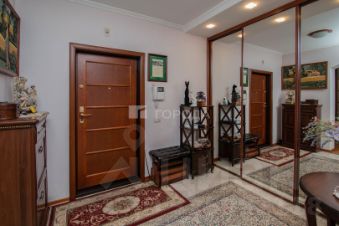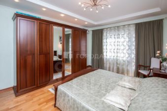 Межкомнатные двери из массива дерева, пол в зале, спальне и коридоре - паркет бук. В спальне установлен кондиционер, выход из спальни на застекленную лоджию 3,2 кв.м. Мебель в спальне производства Италия (спинки кровати, столешницы из натурального дерева)