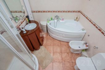 Большая ванная комната 5.9 м.кв. с встроенной душевой кабиной, ванной, биде, умывальником.