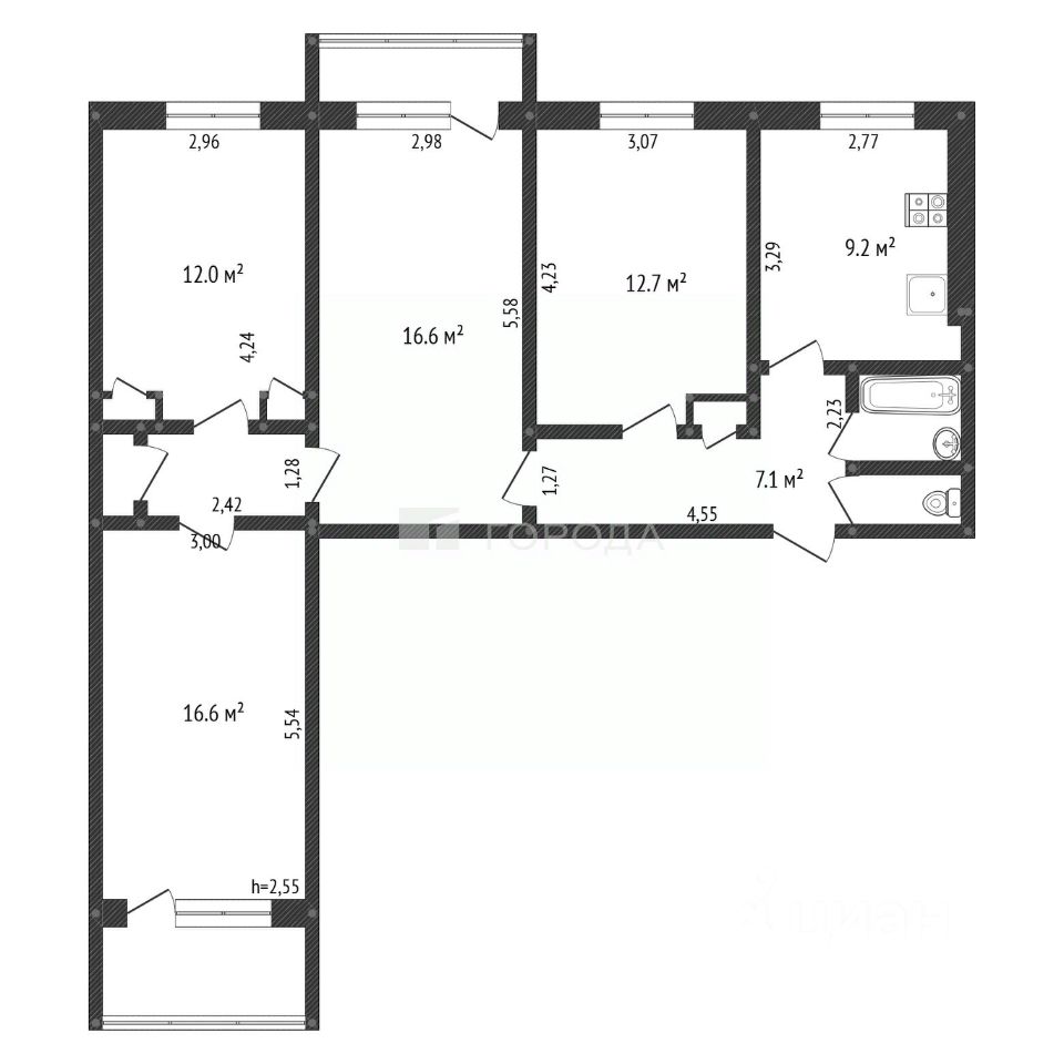 Расположена на седьмом этаже девятиэтажного дома.