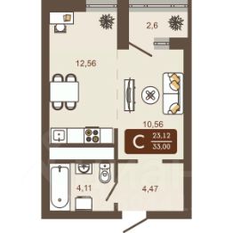 Площадь кухни12,6 м²