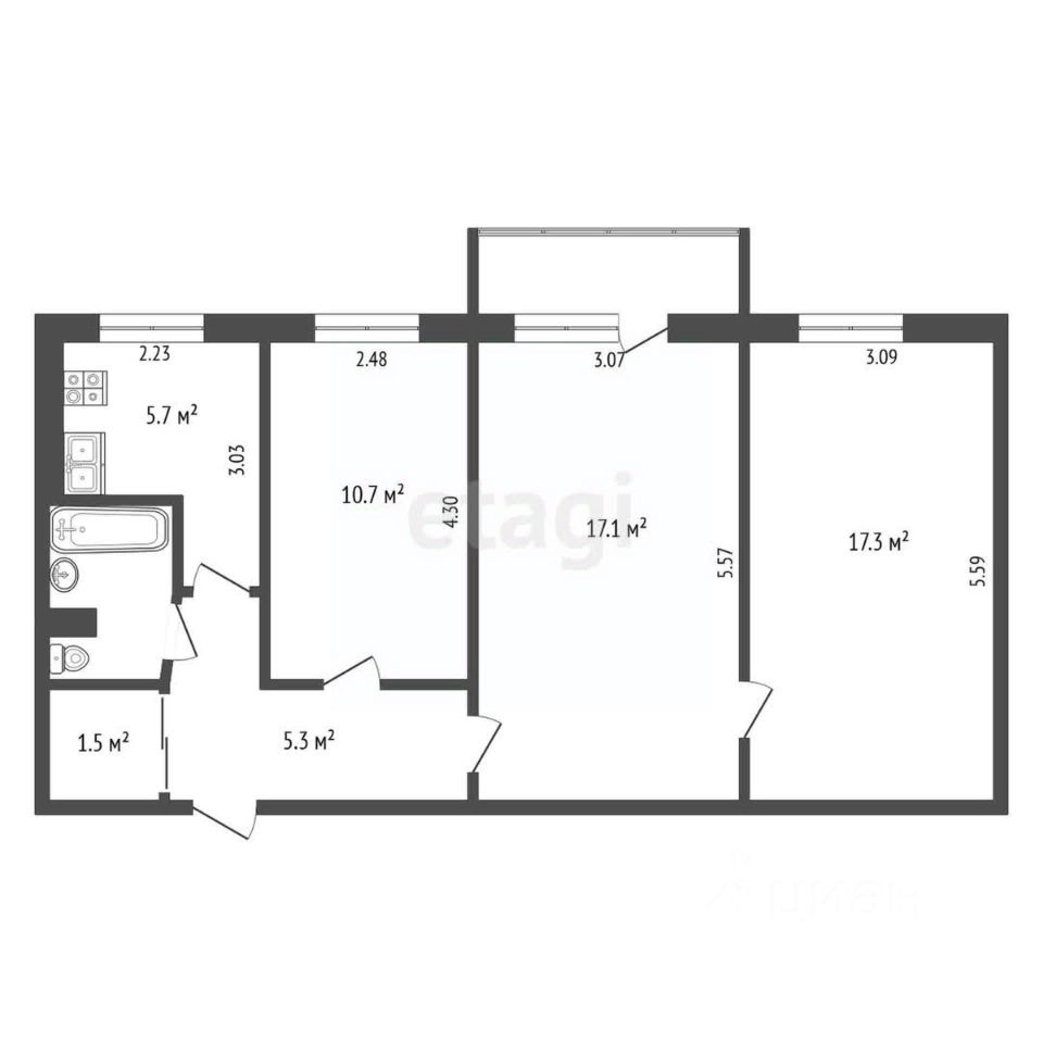 60,5 м²
