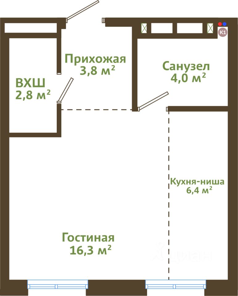 Жилая площадь16,3 м²