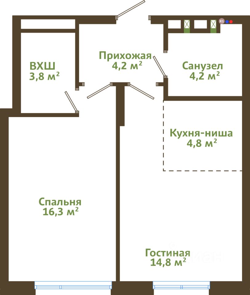 Площадь кухни4,8 м²