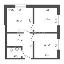 Огромная кухня 18,2м" и просторные комнаты по 18,3 м2 каждая.