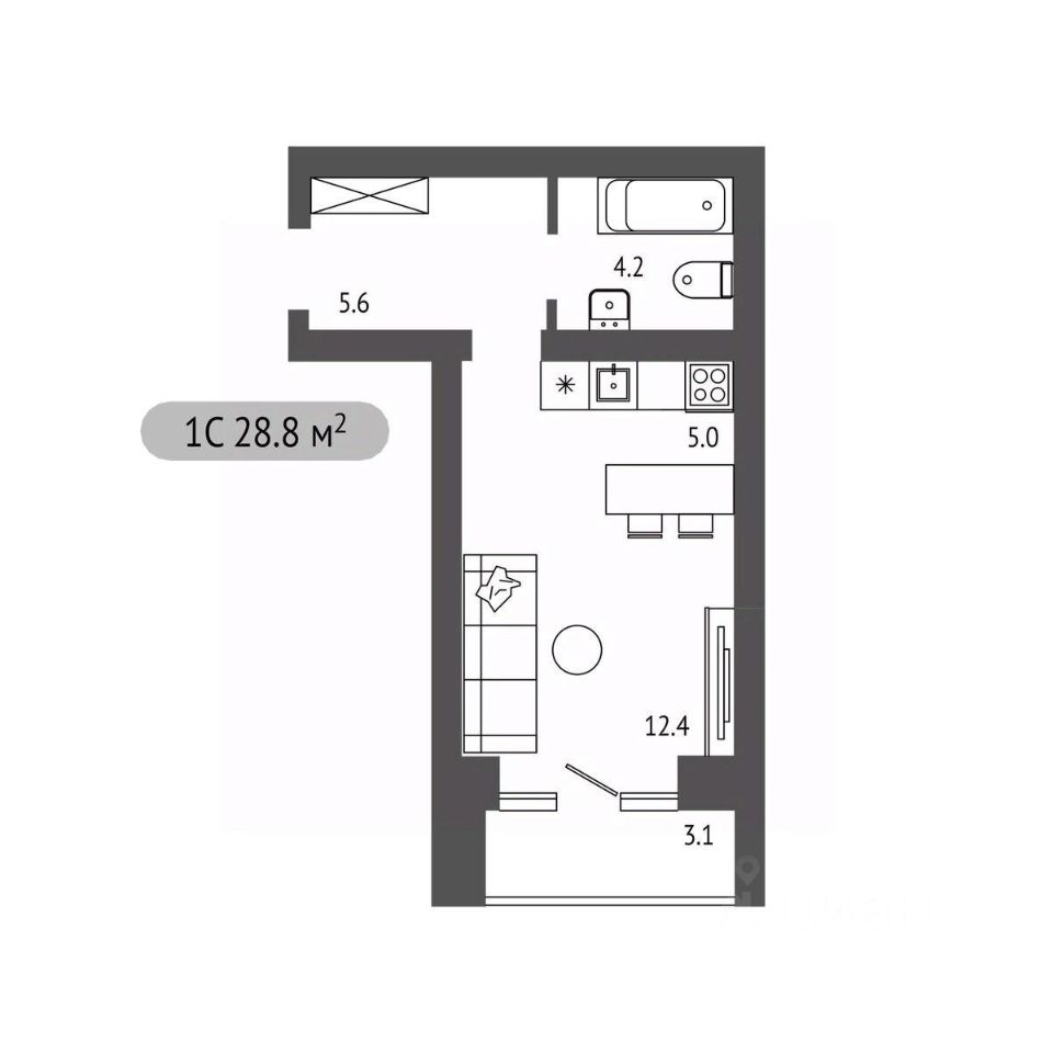 Студия, 28,8 м²