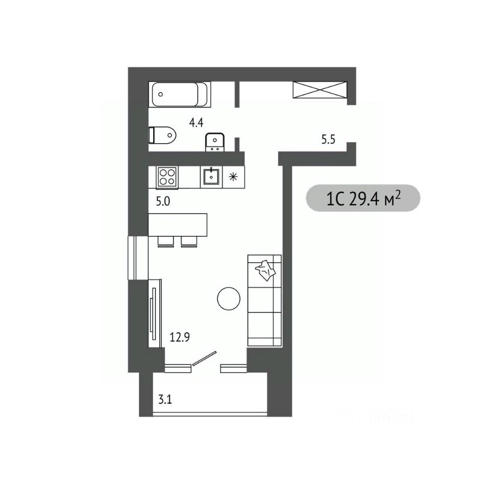 Студия, 29,4 м²