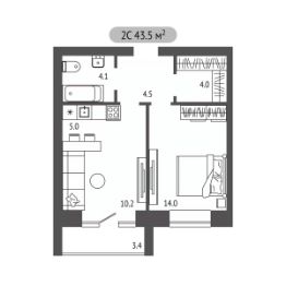 Продаётся 2-комнатная квартира в строящемся доме (Дом 4), срок сдачи: I-кв. 2028, общей площадью 43.5 кв.м., на 2 этаже. Новый жилой комплекс "Загорские Кварталы" от Специализированного застройщика "Реновация" расположен по адресу: пос. Загорский, по ул. Речная.